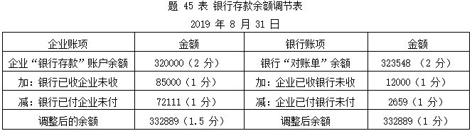 (1)根据所给资料,编制银行存款余额调节表如题45表: